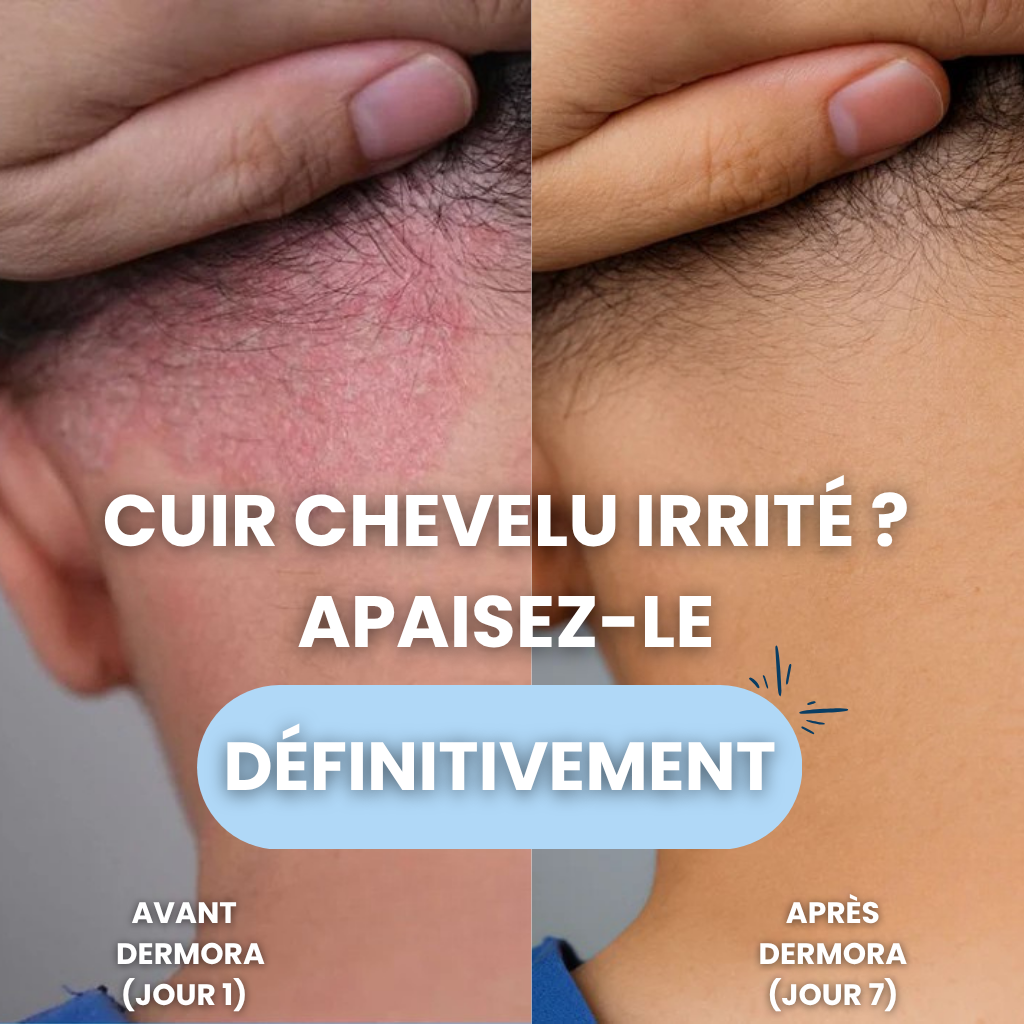 Absolument. Dermora a été formulée pour le visage dès le départ. Vous pouvez l’appliquer sans crainte sur les rougeurs autour du front, des sourcils, des tempes ou du cuir chevelu.